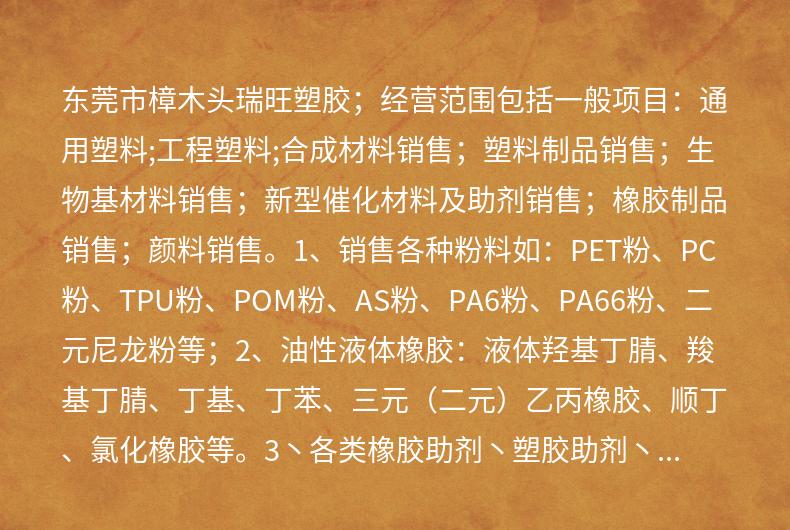 欢迎访问东莞市樟木头瑞旺塑胶原料经营部(个体工商户)