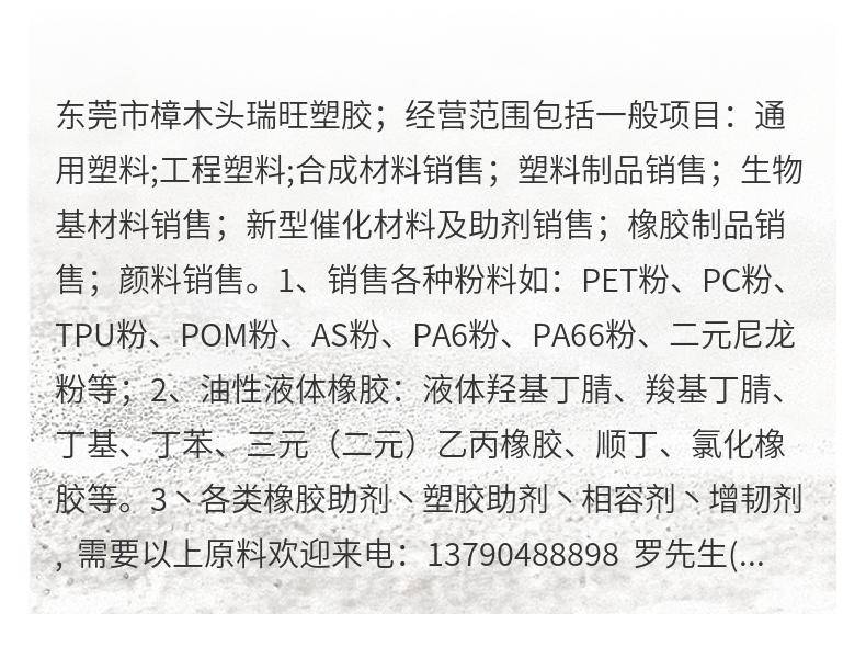 欢迎访问东莞市樟木头瑞旺塑胶原料经营部(个体工商户)